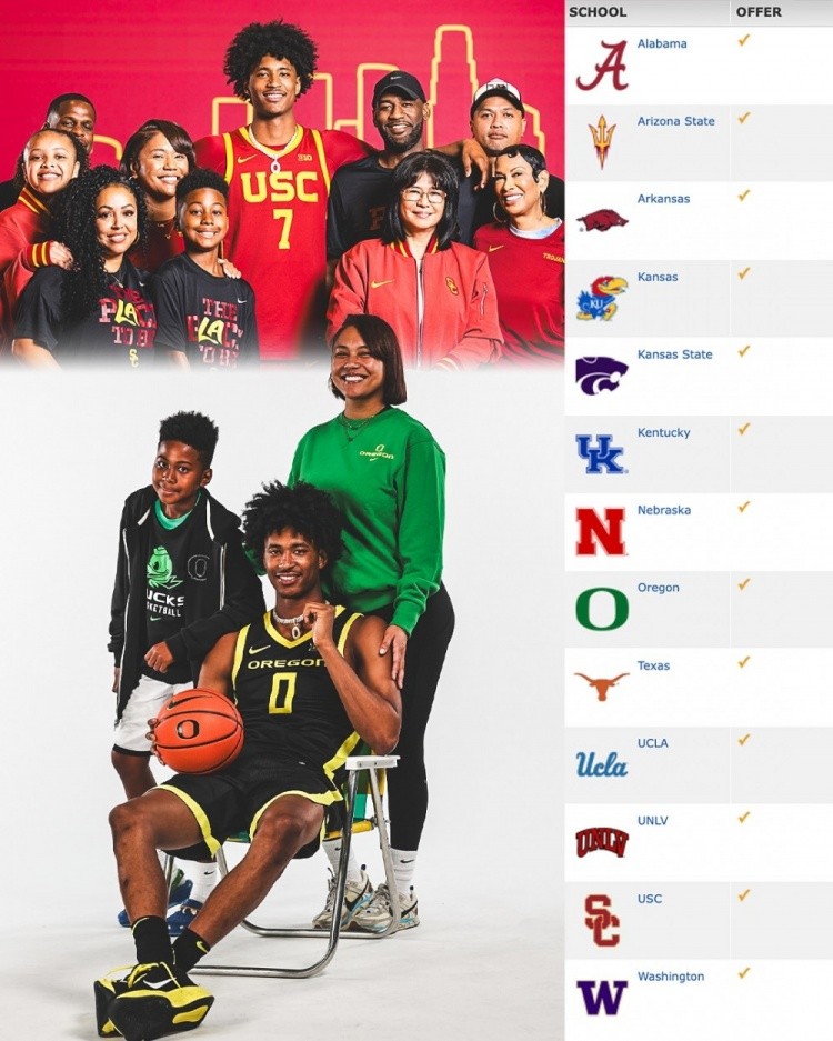 作为ESPN2026届全美排名第24位的高中生,根据ESPN的信息,他的身高约2.08米,体重88公斤,司职小前锋。明年秋天才上大学的塔基已经得到了众多NCAA名校Offer,除了父亲阿里扎的母校UCLA、还有南加大、肯塔基、堪萨斯等大学。